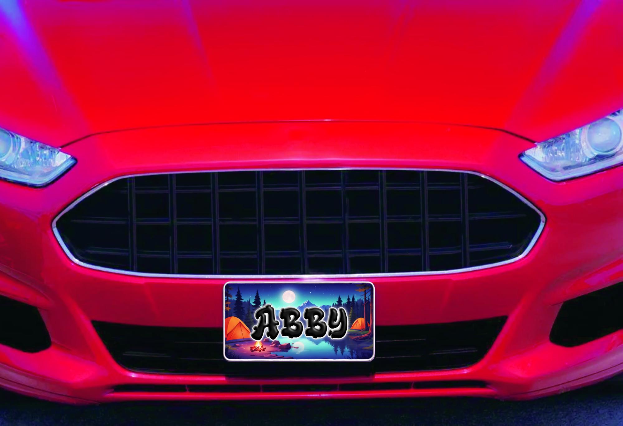 Customized license plates with outdoor and camping themes add a saying or name in the font of your choosing. A mock up will be sent for approval before the item is made and shipped.
